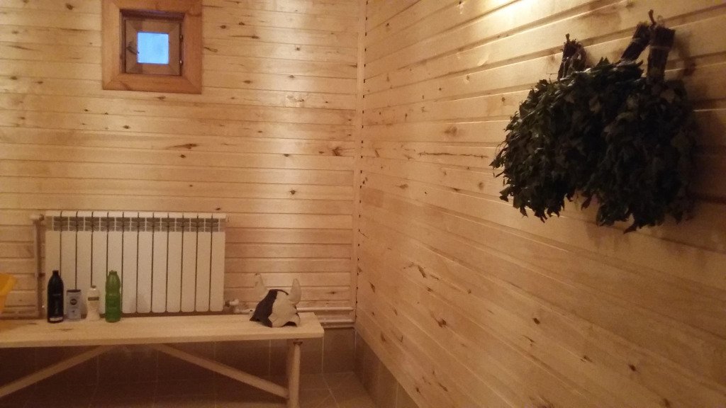 Инфраструктура: зона отдыха, шапочки, душ, березовые веники