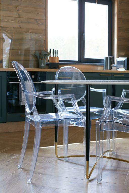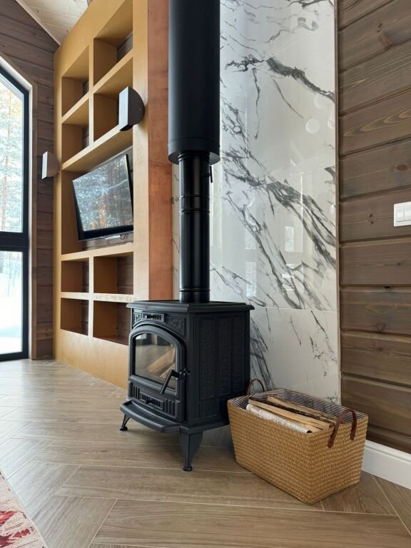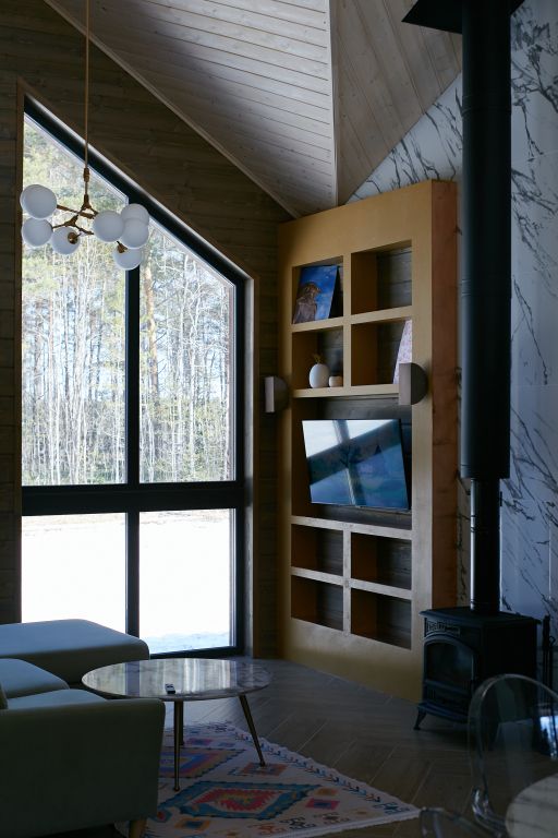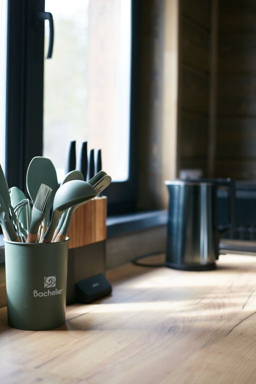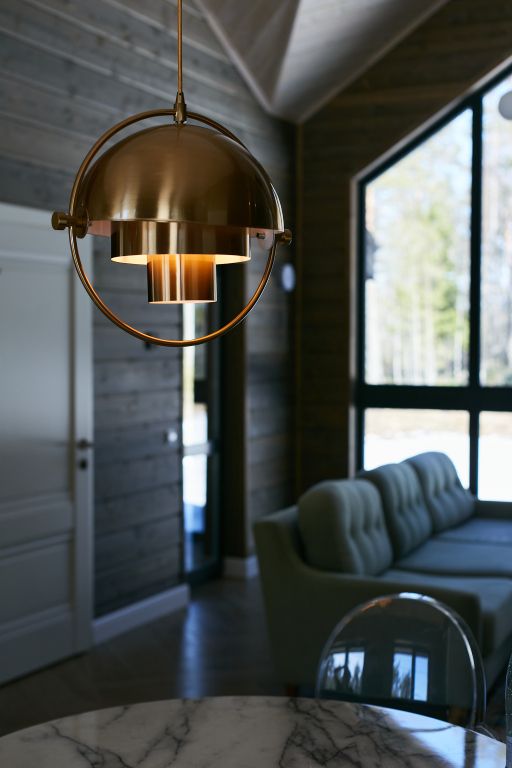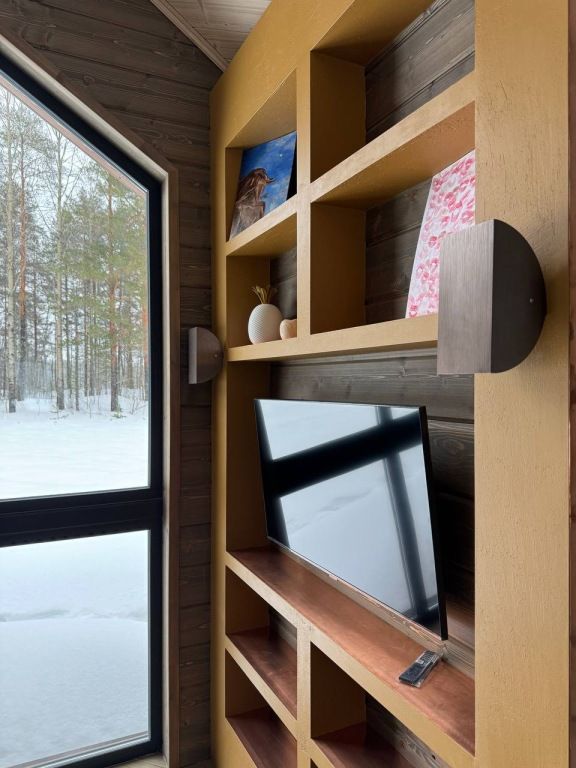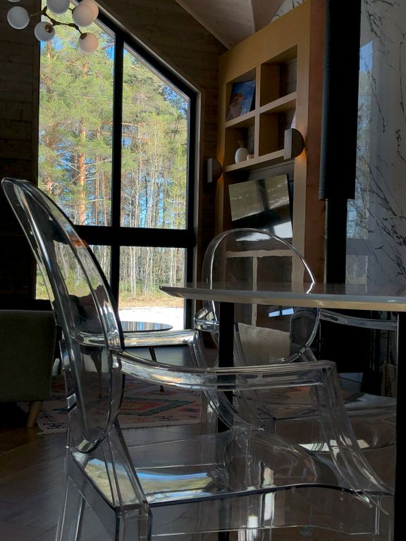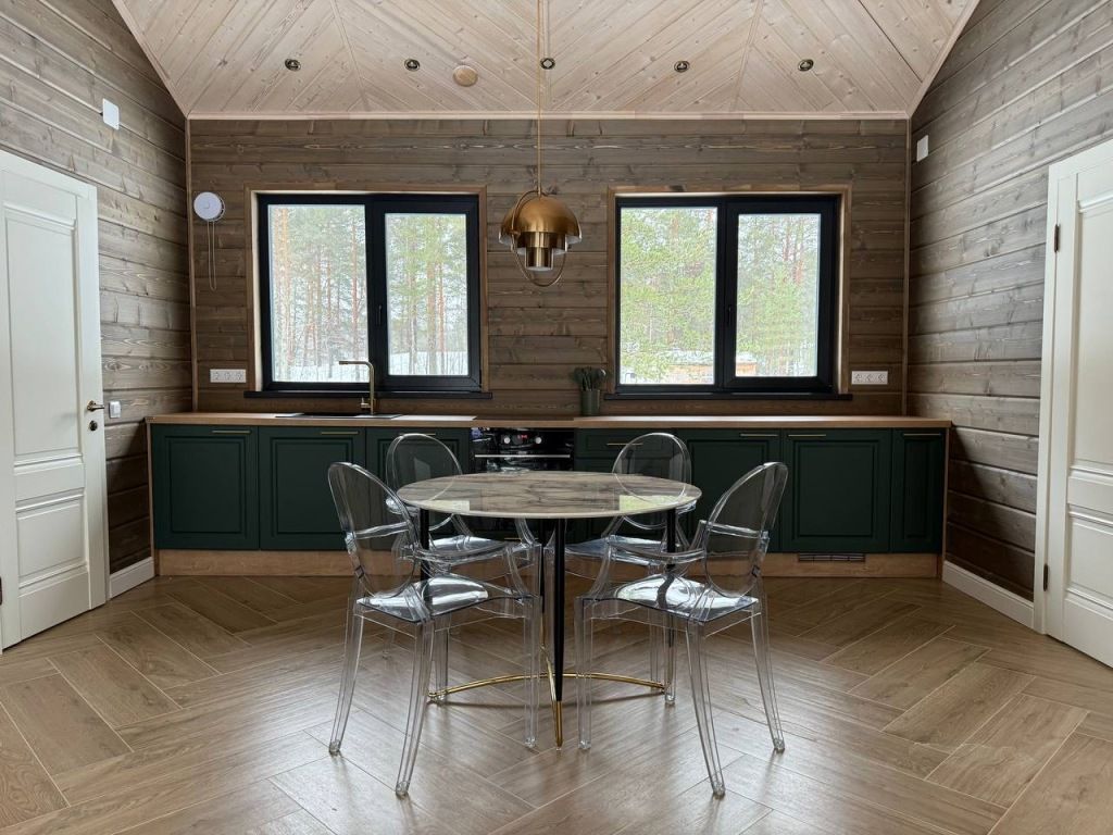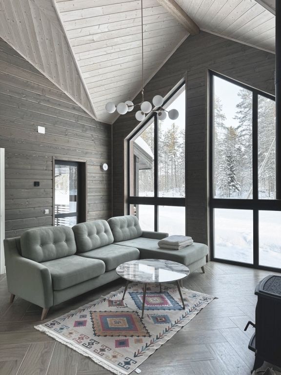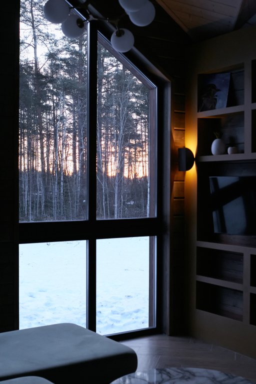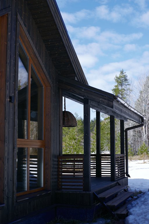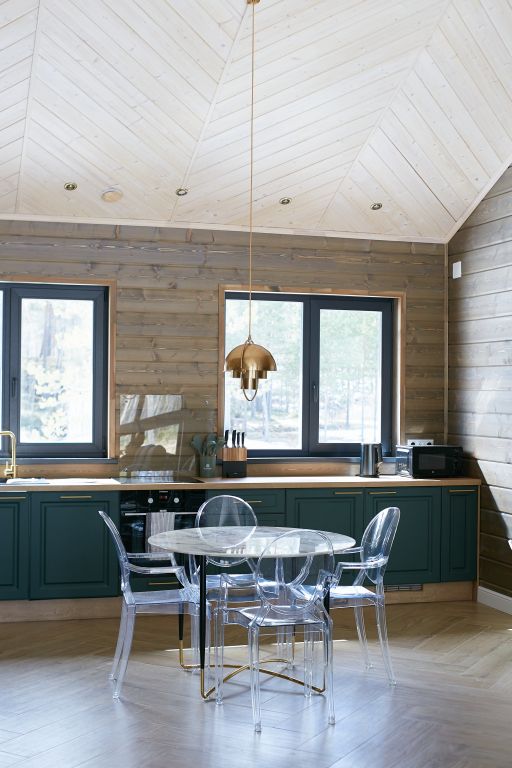 Дом включает в себя единое свободное пространство: гостиная, кухонная зона, две спальни, санузел и сауна. Кухня полностью оборудована для приготовления пищи, большой обеденный стол.