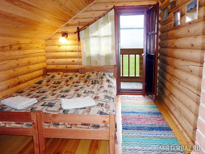 В каждой комнате есть выход на балкон, откуда открывается великолепный вид на Онежское озеро и старинную часовню постройки середины XIX века.