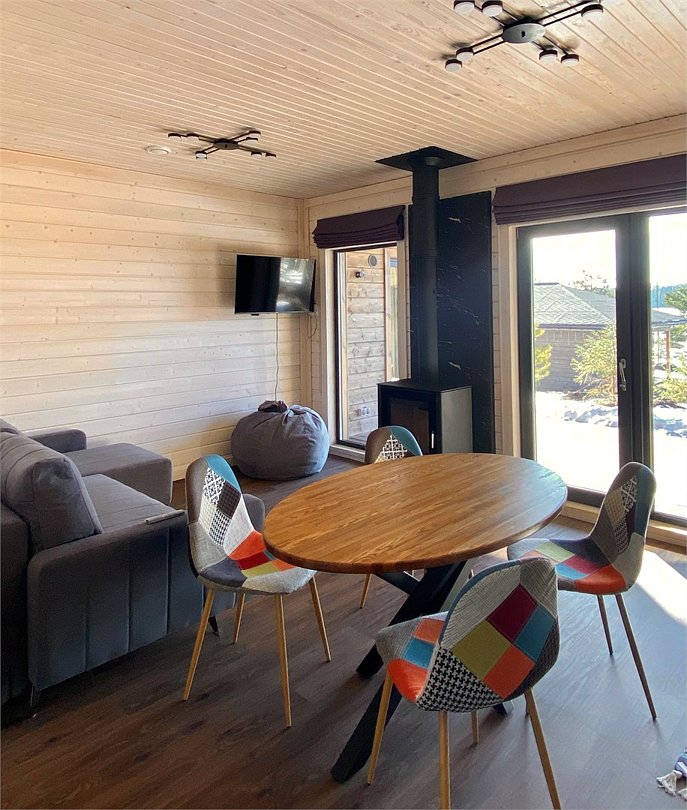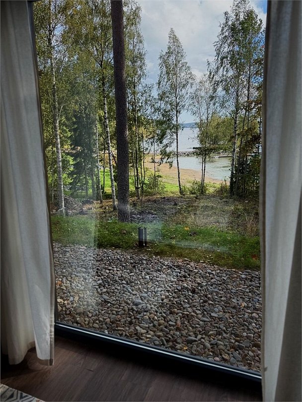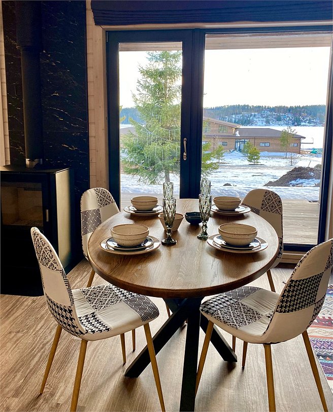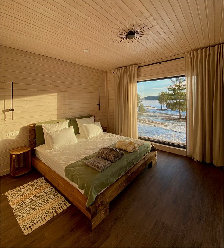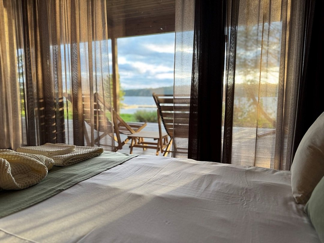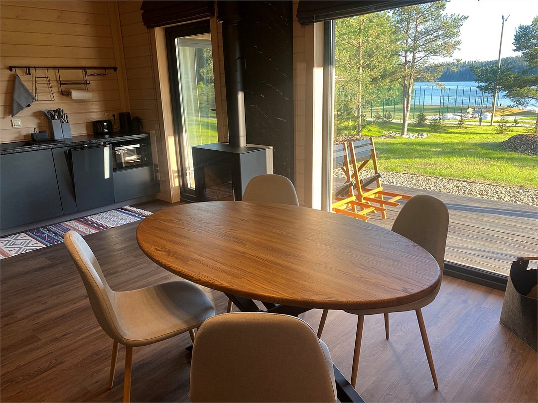 Дом с 3 спальнями, где каждое утро начинается с вида на водную гладь. Панорамные окна по всему периметру дома, просторная гостиная с камином и собственная сауна. Прямой выход на террасу и к собственной береговой линии. Дом полностью оборудован всем необходимым для комфортного отдыха. Наслаждайтесь утренним кофе на террасе с видом на озеро и закатами прямо из гостиной.Услуги и удобства