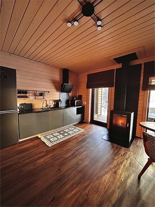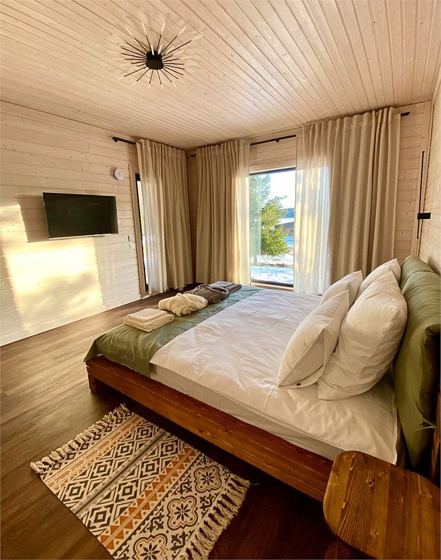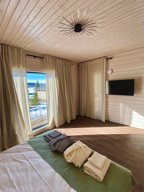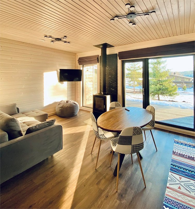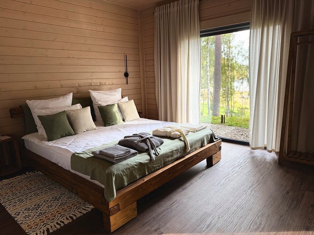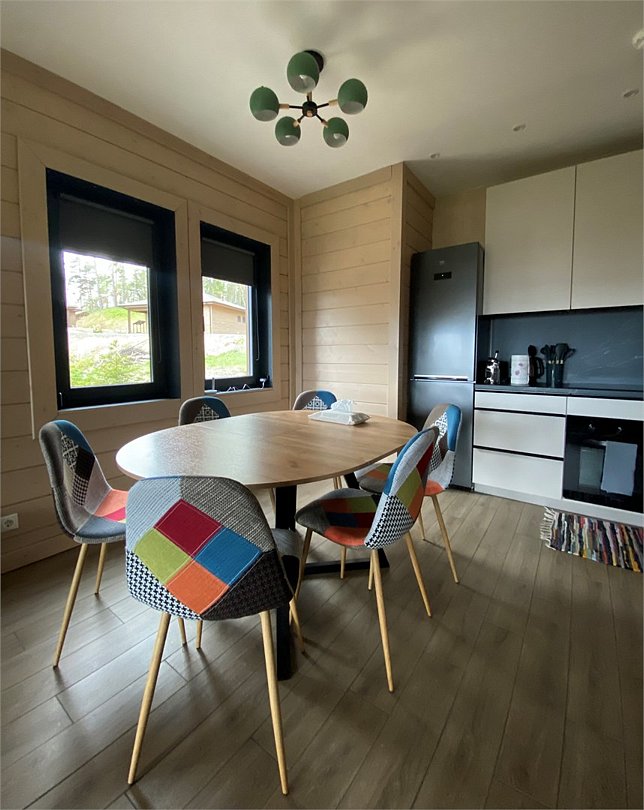 Дом с 3 спальнями, где каждое утро начинается с вида на водную гладь. Панорамные окна по всему периметру дома, просторная гостиная с камином и собственная сауна. Прямой выход на террасу и к собственной береговой линии. Дом полностью оборудован всем необходимым для комфортного отдыха. Наслаждайтесь утренним кофе на террасе с видом на озеро и закатами прямо из гостиной.Услуги и удобства