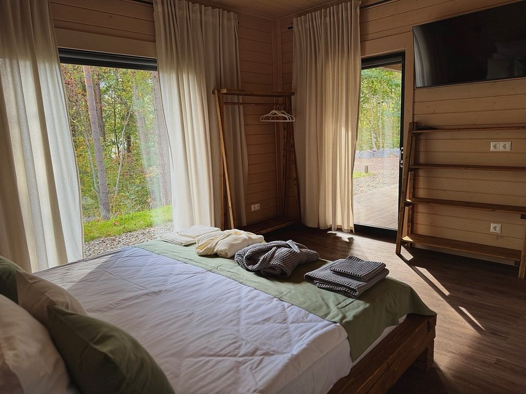 Wi-Fi, холодильник, фен, вентилятор, плита для приготовления пищи, утюг, душевая кабина, теплый пол, банные принадлежности, халаты, банные полотенца, тапочки, терраса, двуспальная кровать, полутораспальная кровать, стулья, обеденный стол, посудомоечная машина, мягкая мебель, душ, тостер, кухонная посуда, кухонная утварь, туалетные средства, мангал, вид на озеро, телевизор со Smart TV, гигиенический душ, морозильная камера, духовка, набор для приготовления чая и кофе, шапочка для душа, затемняющая штора, окна от пола до потолка, можно с питомцамиВ доме