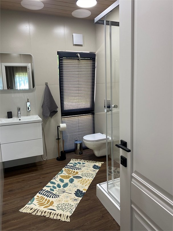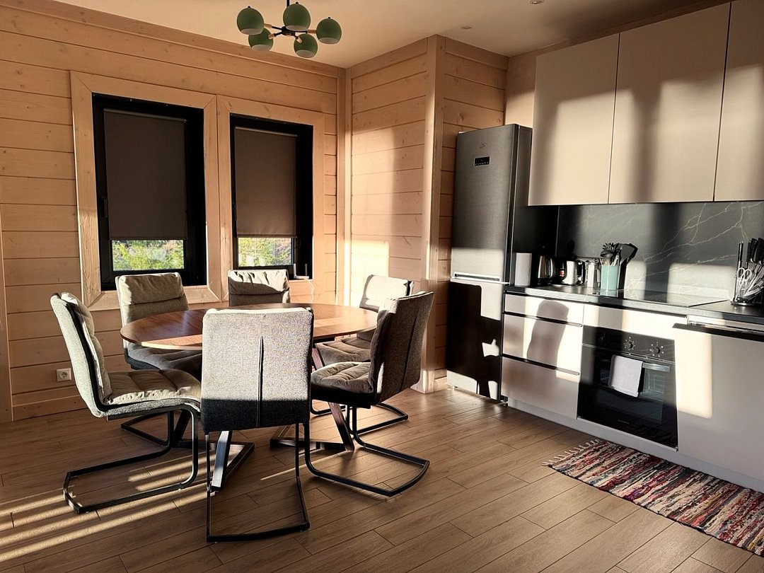 Wi-Fi, холодильник, фен, плита для приготовления пищи, микроволновая печь, утюг, душевая кабина, дополнительный санузел, банные принадлежности, халаты, банные полотенца, терраса, двуспальная кровать, гладильная доска, диван, стулья, вешалки, обеденный стол, набор посуды, посудомоечная машина, чайник, тостер, кухонная посуда, стаканы, столовые приборы, туалетные средства, мангал, панорамные окна, вид на озеро, телевизор со Smart TV, теплые полы, гигиенический душ, морозильная камера, фумигатор, набор для приготовления чая и кофе, шапочка для душа, затемняющая штора, дождевой и ручной душ, можно с питомцами, уличная мебельВ доме