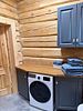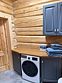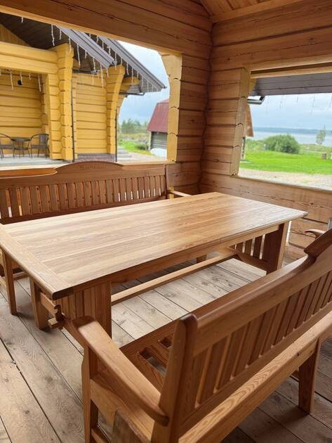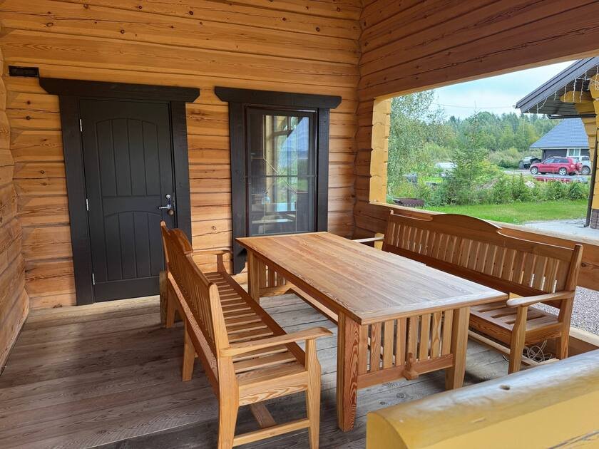 - сруб из лафета, камин из талькомагнезита, просторная финская сауна, дизайнерская мебель из массива и множество деталей тонкой ручной работы из натурального дерева.