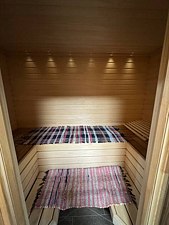 Просторная финская сауна с подсветкой включена в стоимость проживания и находится внутри.
