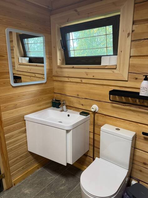 Просторная финская сауна с подсветкой включена в стоимость проживания и находится внутри домов.