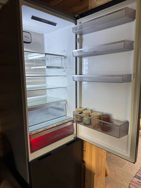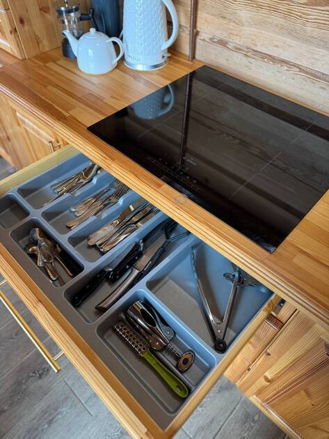 Кухня оборудована большим двухкамерным холодильником, духовым шкафом, плитой, посудомоечной машиной, микроволновой печью и всеми необходимыми мелкими бытовыми приборами, кастрюлями и сковородами для приготовления пищи.