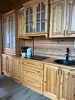 Кухня-столовая с обеденной группой из массива дерева на 6 персон, столовым буфетом с элегантной посудой для сервировки вашего стола и полностью оборудованной кухней. Кухня оборудована большим двустворчатым холодильником, духовым шкафом, плитой, посудомоечной машиной, микроволновой печью и всеми необходимыми мелкими бытовыми приборами, кастрюлями и сковородами для приготовления пищи.
