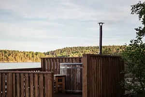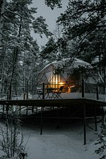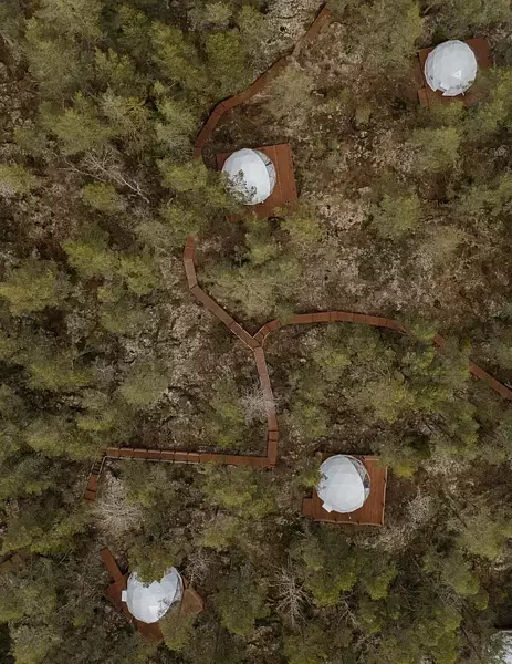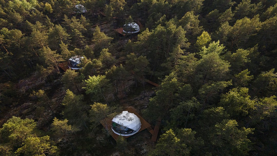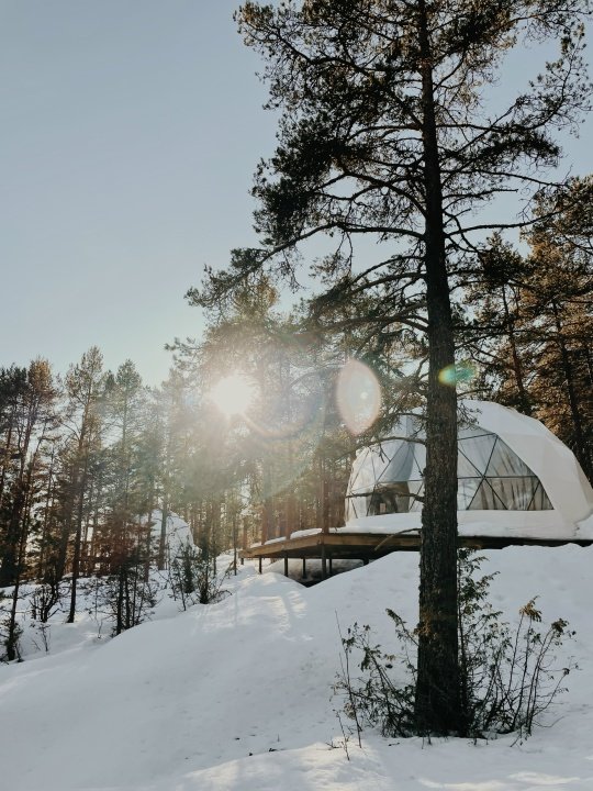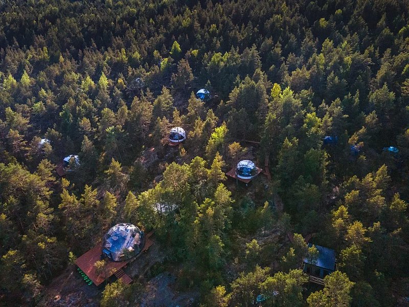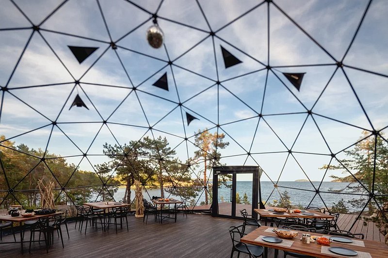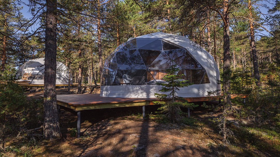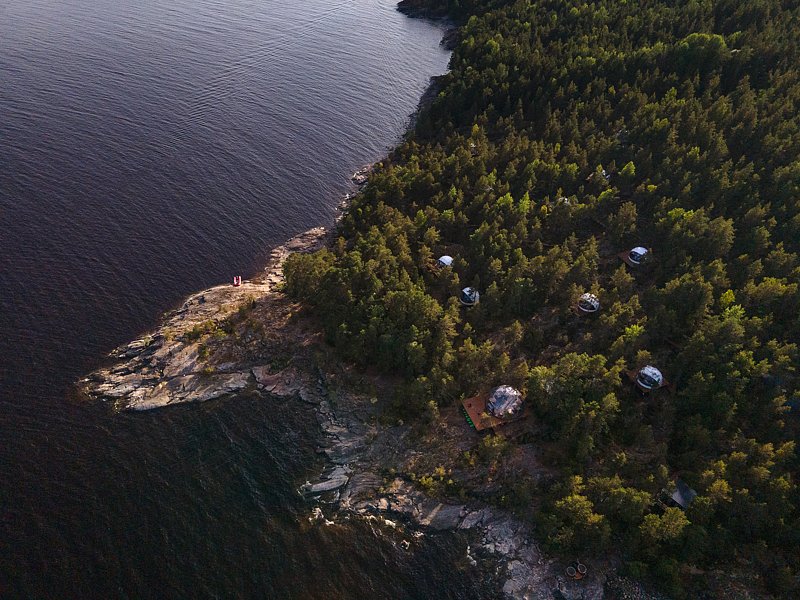 На территории глэмпинга расположены 13 уютных геокуполов, которые находятся поблизости от озера. Также здесь имеются 2 бани-фурако с видом на водоем и лаундж-зона с панорамным видом на Ладогу.