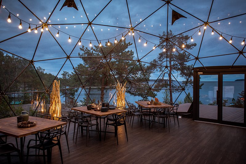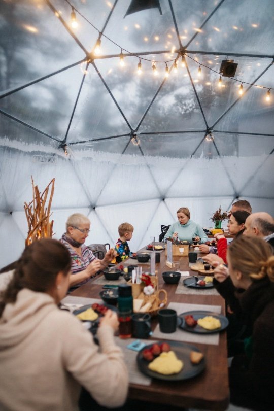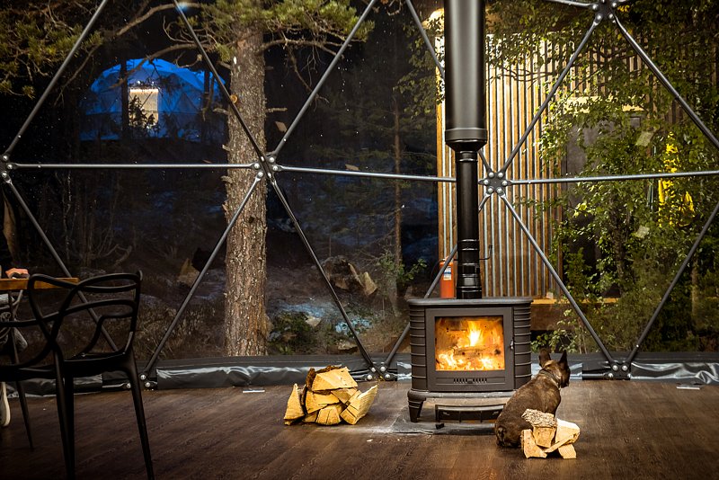 В каждом куполе есть электропростыни и камин с автоматической подачей топлива.