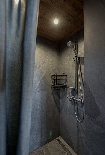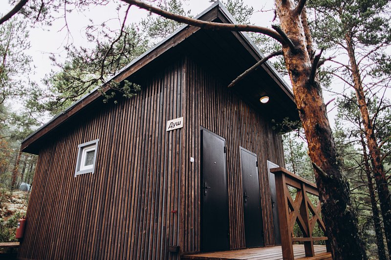 Комфортный душ на территории. Шампуни, гели из натуральных компонентов предоставляются. Фены в наличии в душевых.