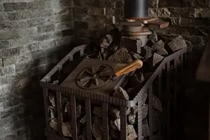 Для обогрева геокупола используется пеллетный камин с автоматической подачей топлива и электропростыни.