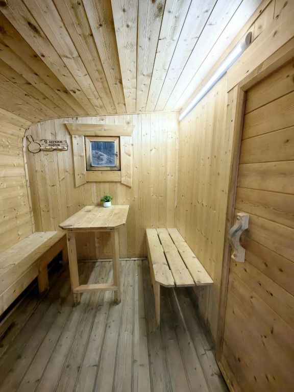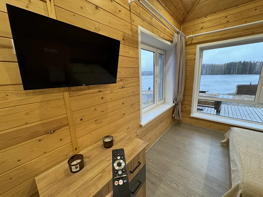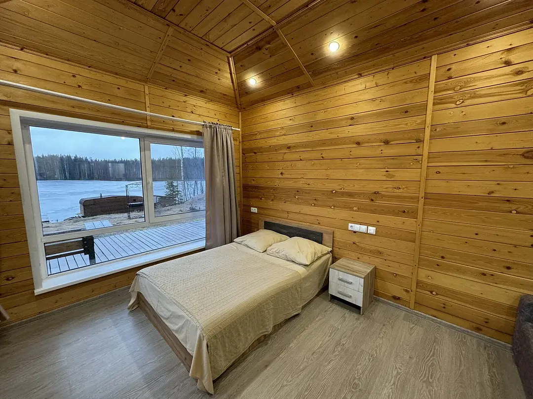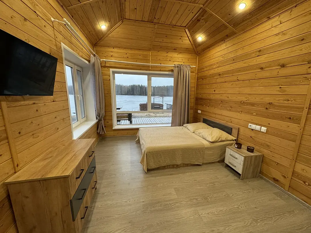 На берегу озера стоит русская баня на дровах — идеальное место для расслабления. После парения гости могут освежиться в кристально чистых водах озера.