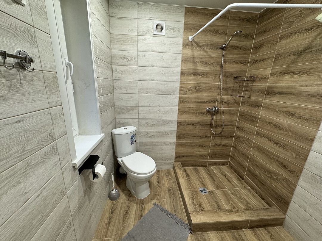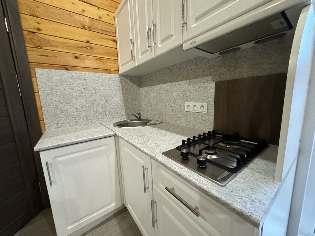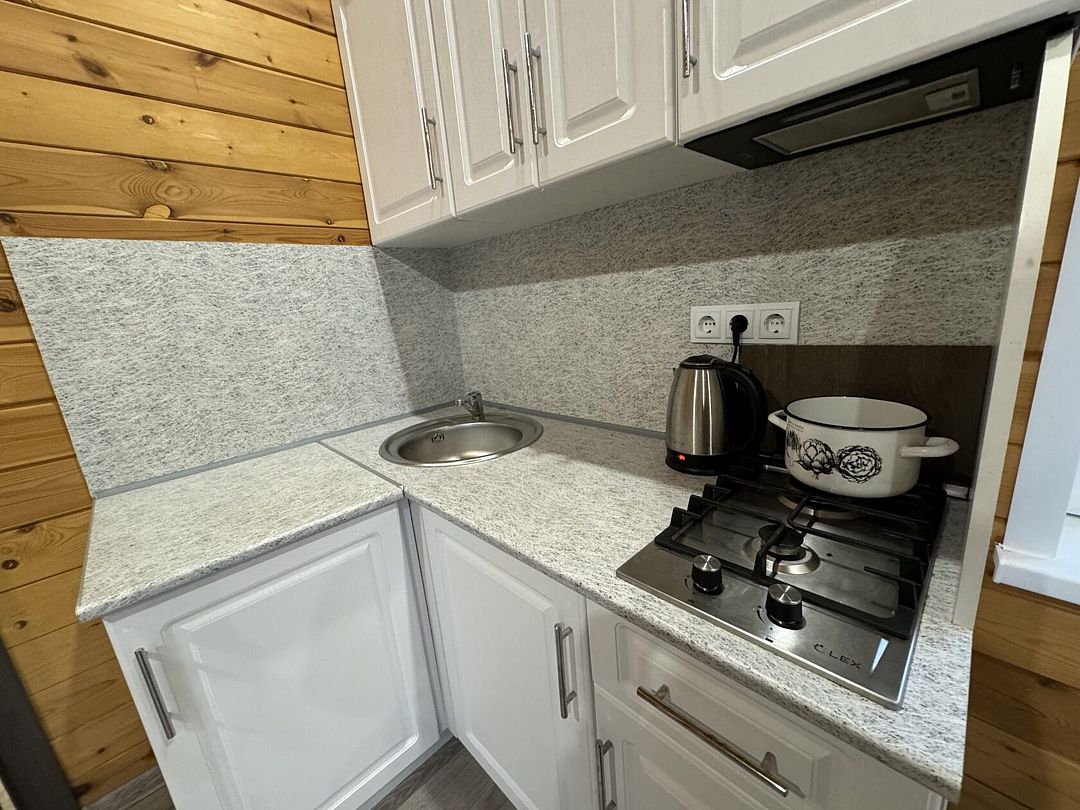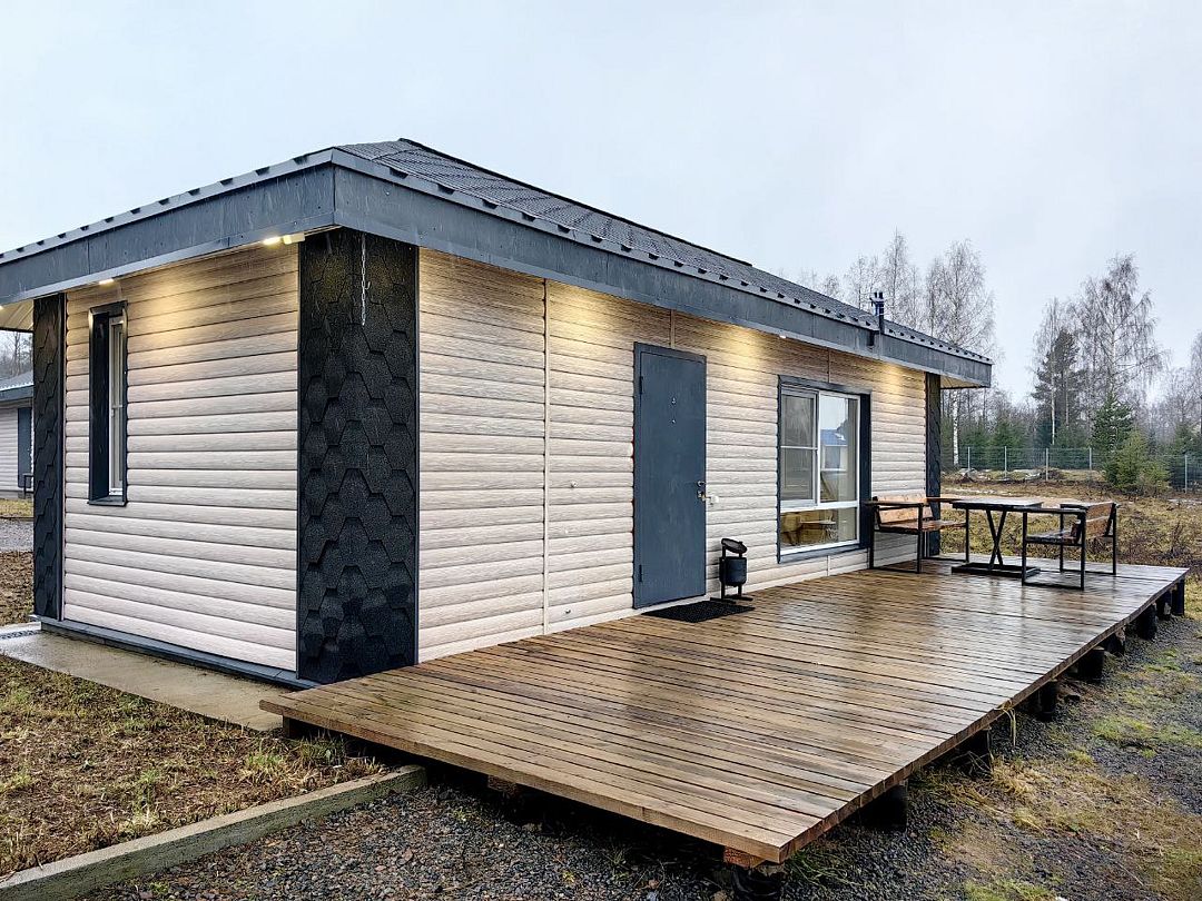 В домике для вас: собственная терраса с мебелью для отдыха на улице, двуспальная кровать с ортопедическим матрасом и свежим постельным бельем, двухместный раскладной диван, душевая, туалет, раковина, средства гигиены и свежие полотенца.