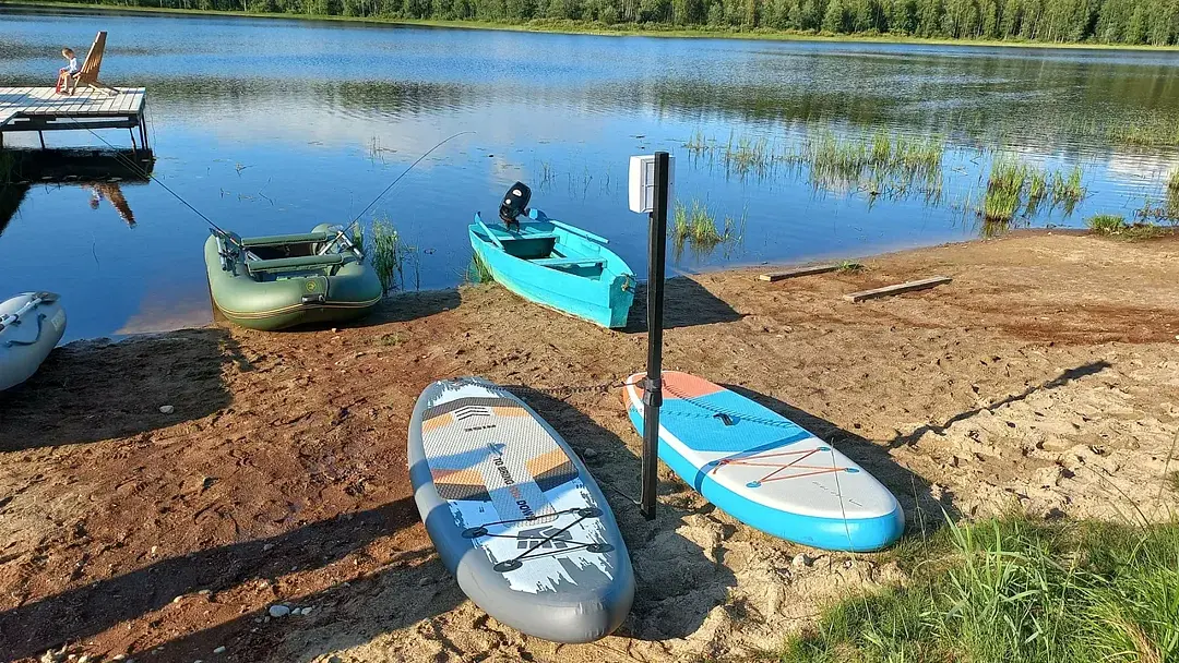 Причал отлично подходит для рыбалки в любое время года. Для любителей водных прогулок и отдыха на воде доступны лодки и сап-борды.