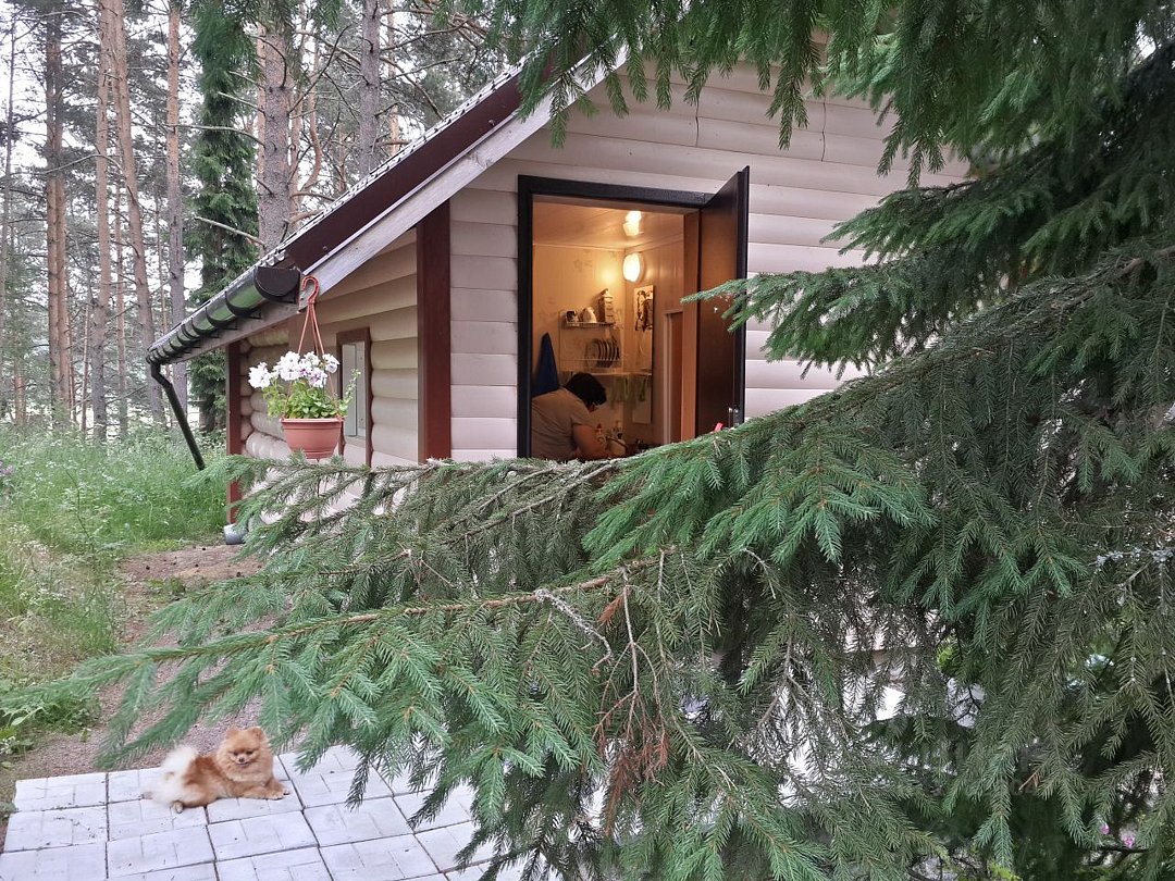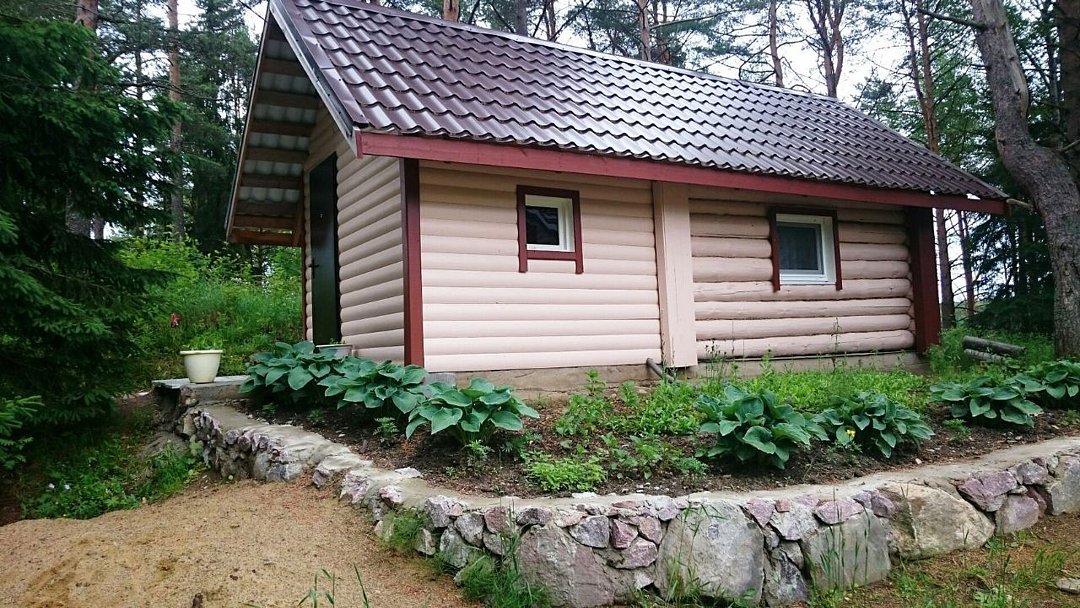 Домик построен в 2015 году и расположен в живописном лесу рядом с берегом Ладожского озера. Недалеко от домика находится традиционная русская баня с дровяной печью.