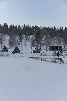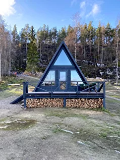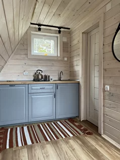 Уютный дом установлен на деревянный настил, подходит для проживания в любое время года. Расположен на берегу озера, имеет собственную террасу и мангальную зону.