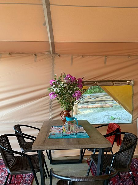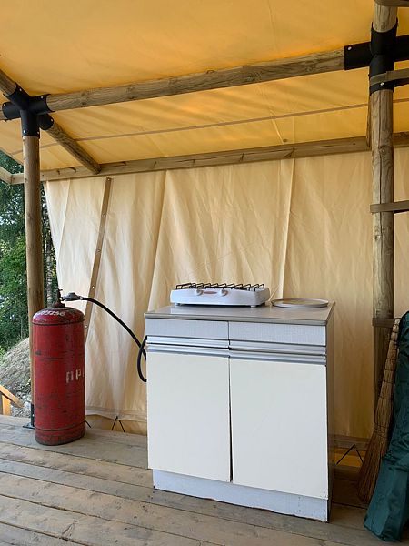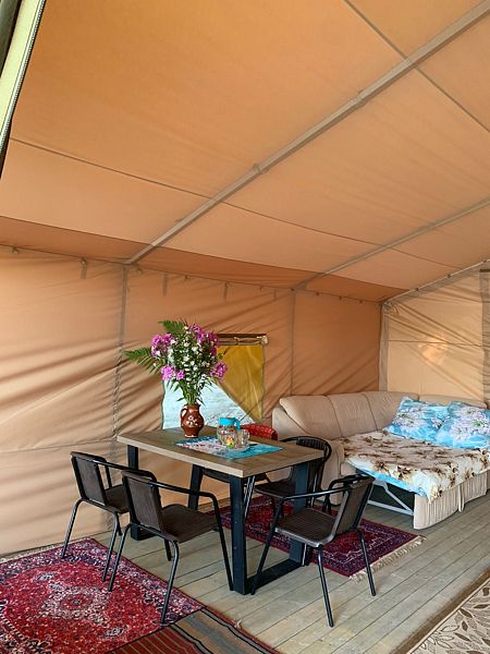 Вам представляется вариант размещения — сафари палатка. Это полноценный модуль проживания со всем необходимым.