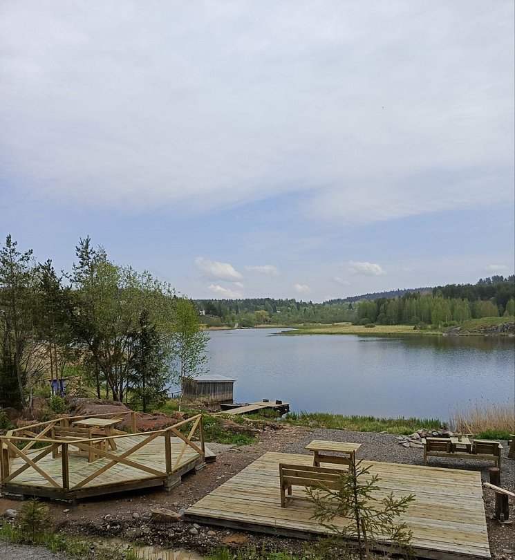 - Второй маршрут: прогулка по воде между шхерами, красивые отвесные скалы, радоновое (термальное) озеро с купанием.