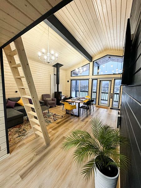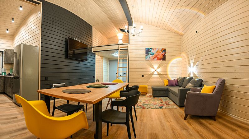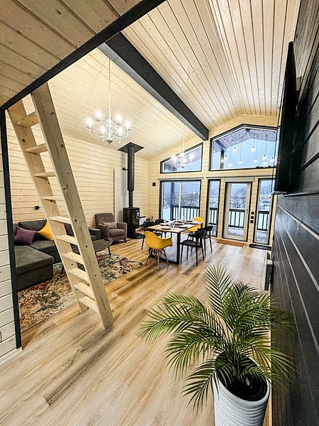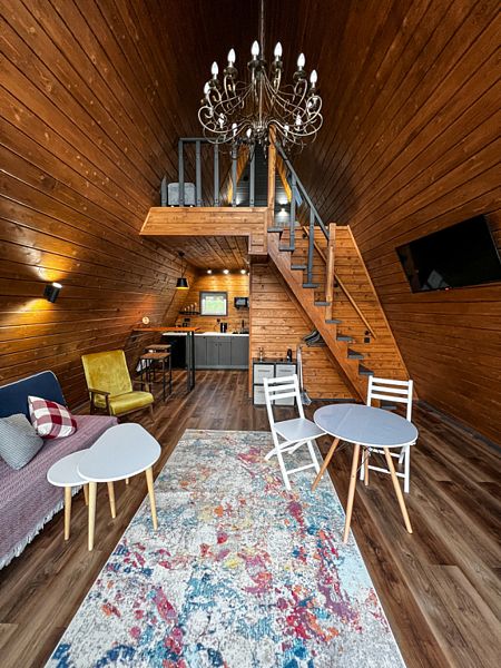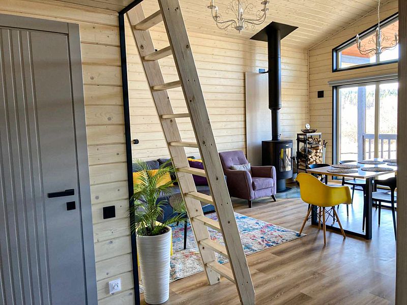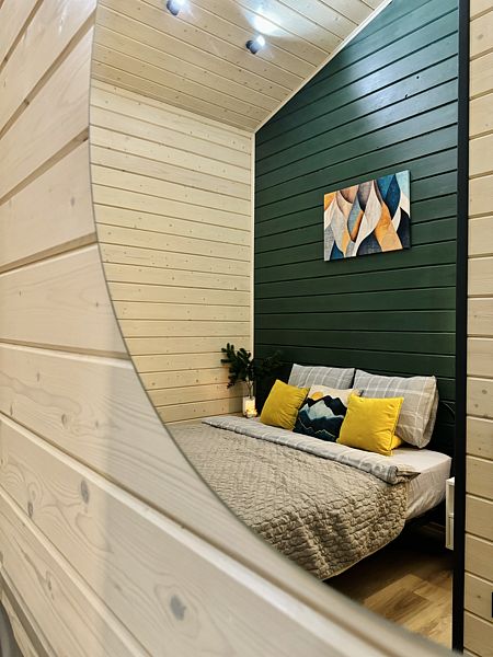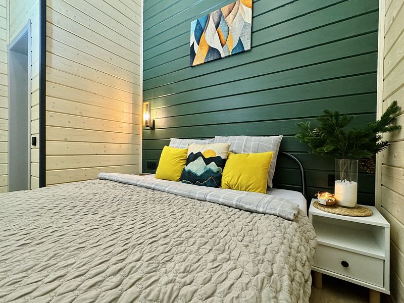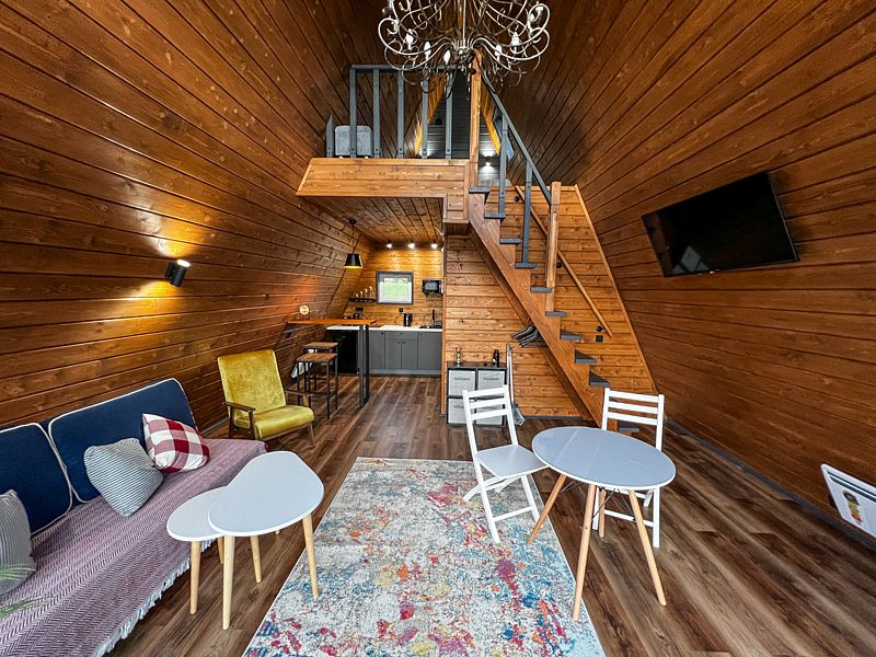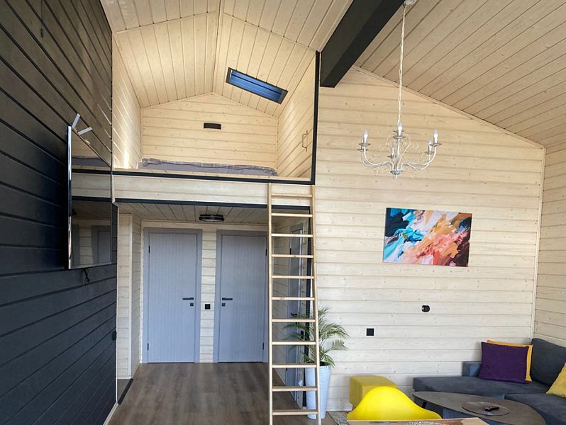 В доме 2 отдельные спальни, лофт этаж, кухня-гостиная, туалет, душевая, сауна и терраса.