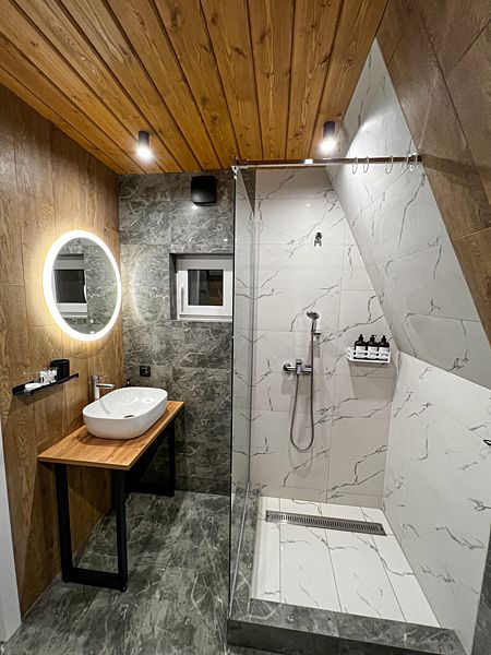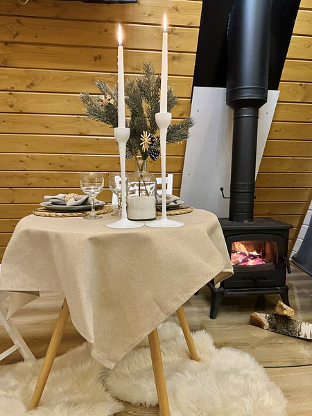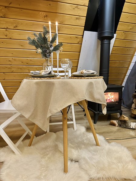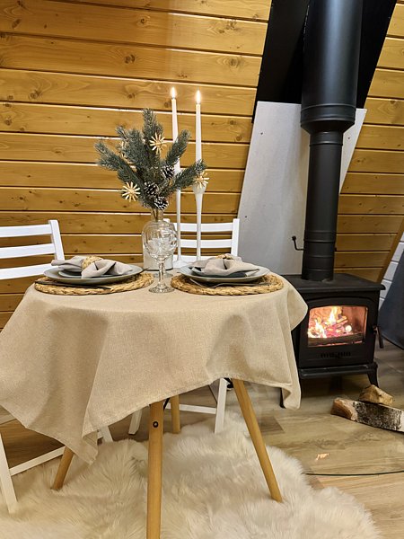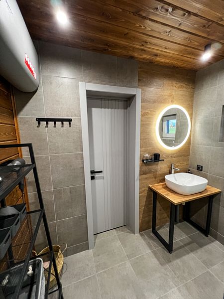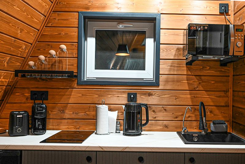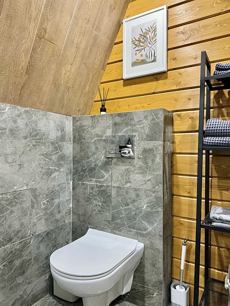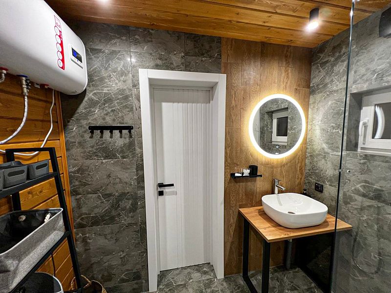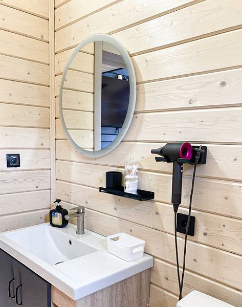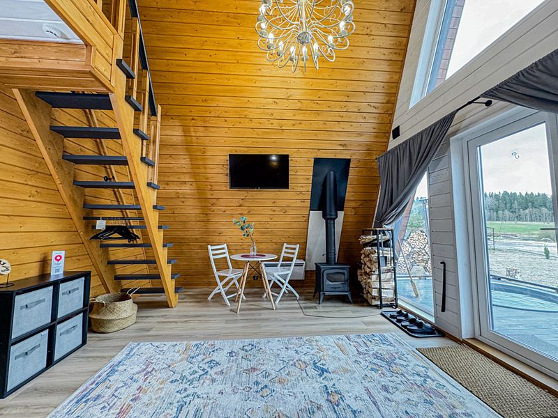 Дом новый, сделан с большой любовью к нашим гостям, с проходными выключателями, с достаточным количеством розеток, с теплыми электрическими полами в душевой, с пассивной вентиляцией, панорамным остеклением, телевизором со смарт ТВ, мансардным окном на лофт этаже, камином и подогреваемой гидромассажной купелью.