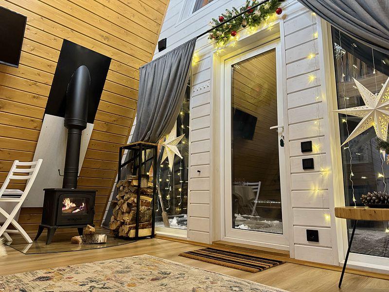 В доме уютная, инстаграмная атмосфера и печь-камин!