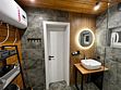 Отапливается дом с помощью электрических умных конвекторов, теплых электрических полов и дровяной печи-камин.