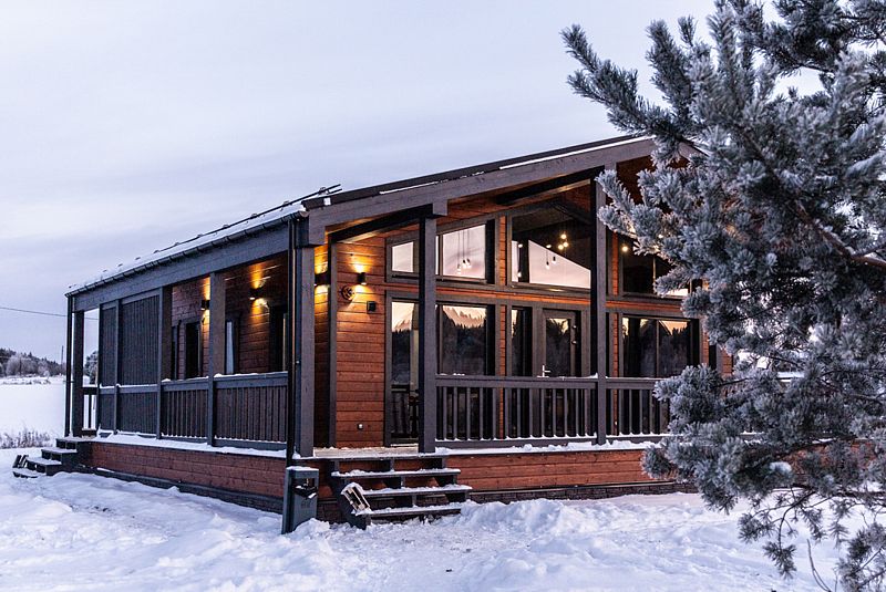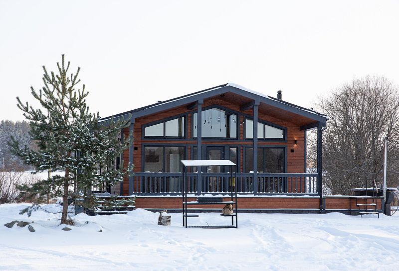 Дом увеличенной высоты и ширины, поэтому в нём совсем не тесно вчетвером.
