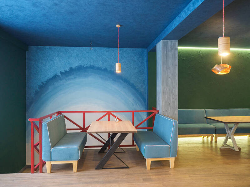 Номера категории комфорт, двухкомнатный номер с двуспальной кроватью в одной комнате и с двумя одноместными 2-х этажными кроватями) и диваном в своей зоне отдыха. Гостиная с «горячей точкой» (травяной чай, черный, фруктовый, кофе), холодильник, микроволновка, стол, зона отдыха, санузел и душ в номере. 2 этаж.