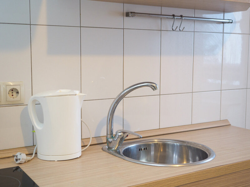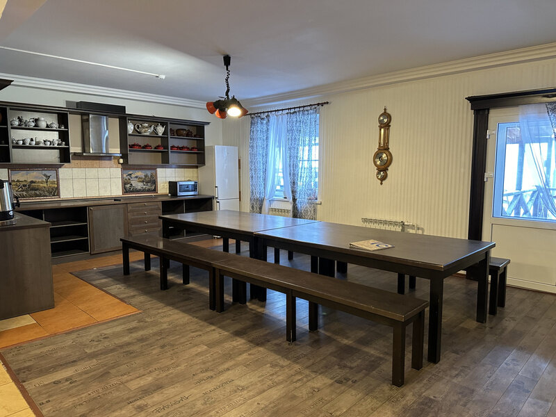 Гостиная с «горячей точкой» (травяной чай, черный, фруктовый, кофе), холодильник, микроволновка, стол, зона отдыха, санузел и душ в номере. 2 этаж.