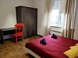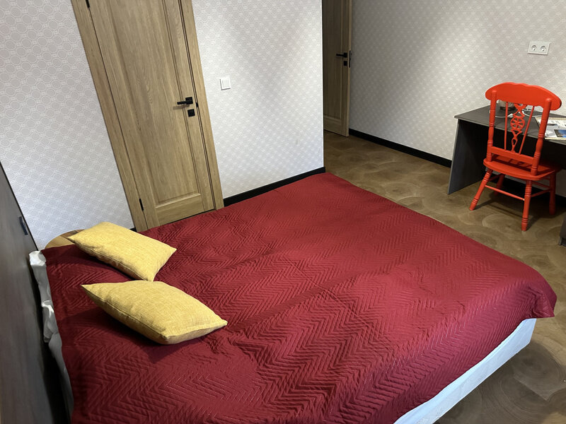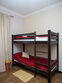 Одна двуспальная кровать. Санузел и душ в каждой комнате. Может быть объединён с номером с двухъярусными кроватями.