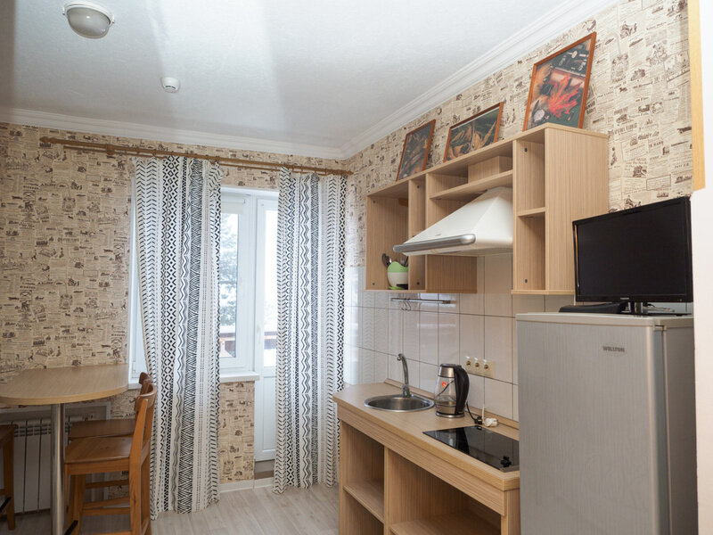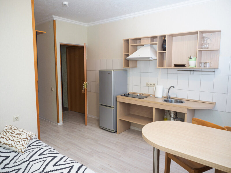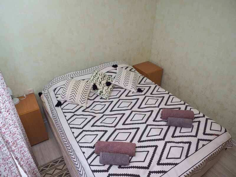 Номера категории семейный с мини-кухней (2 номера на 2 этаже) Двухкомнатный номер с двуспальной кроватью в одной комнате и раскладным диваном в другой.