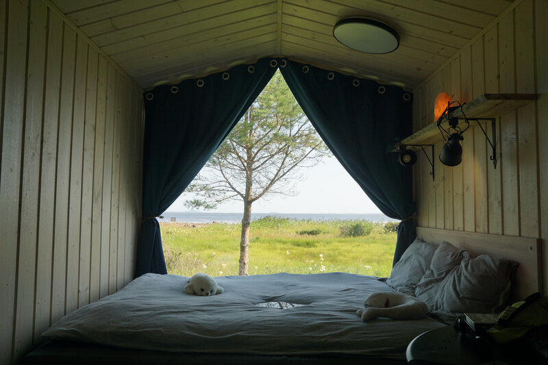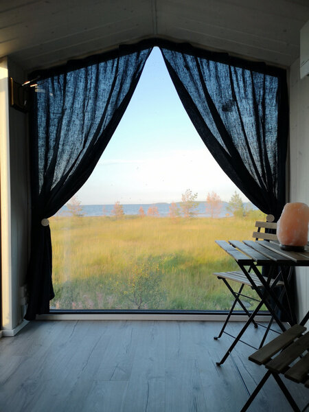 Эко-домик с панорамными окнами расположен на берегу Белого моря.