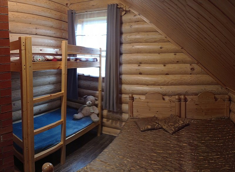 - 2 этаж: две светлые спальни: первая спальня с двухъярусной кроватью и 2-х спальным диваном, вместительный шкаф; вторая спальня с детской двухъярусной кроватью и 2-х спальной кроватью, шкаф, комод.