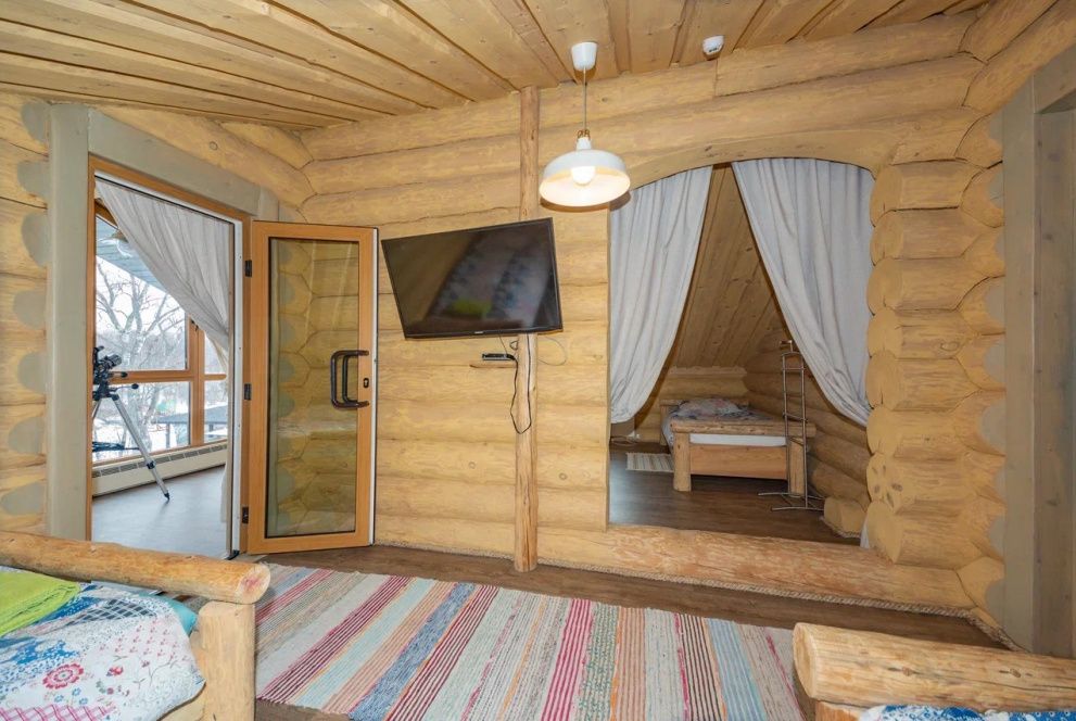 К услугам гостей 2 комфортабельных коттеджа на берегу реки, из которых открывается панорамный вид на окрестности.