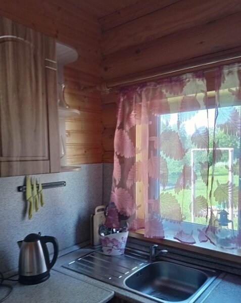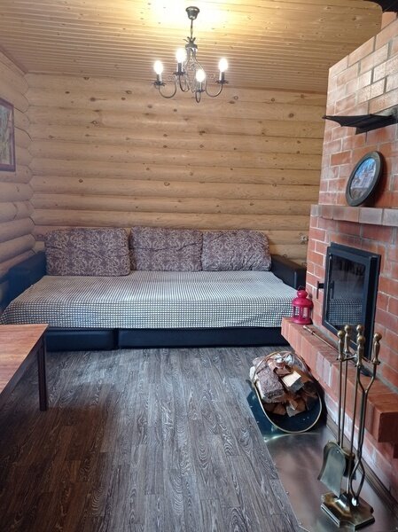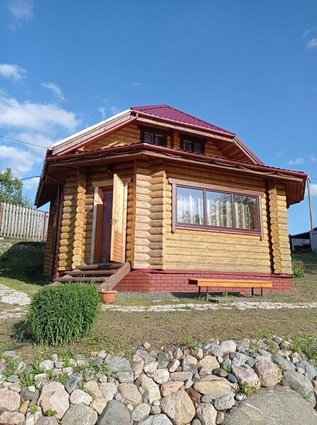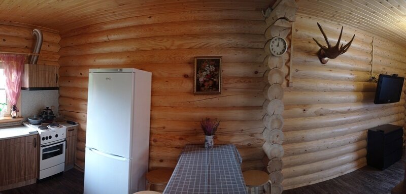 гостевой дом из бревна с большой печкой и камином, расположен на территории 30 кв. м., на окраине леса, непосредственно у воды с собственным причалом.