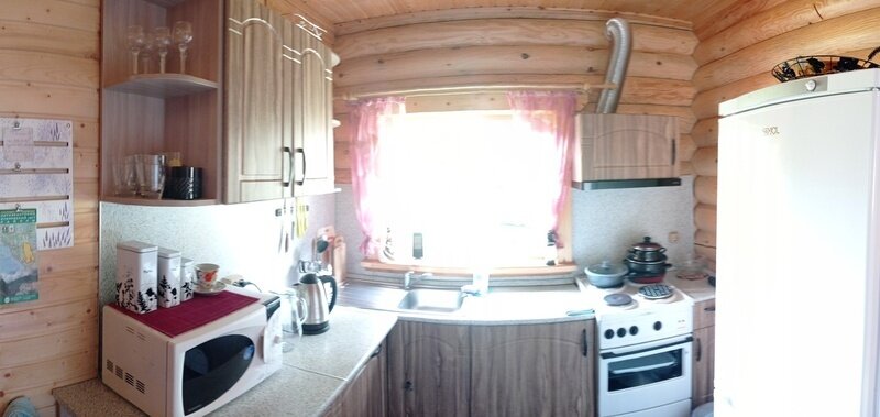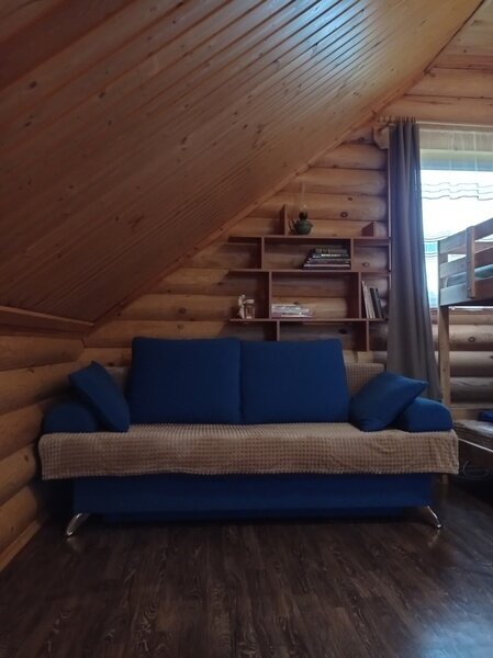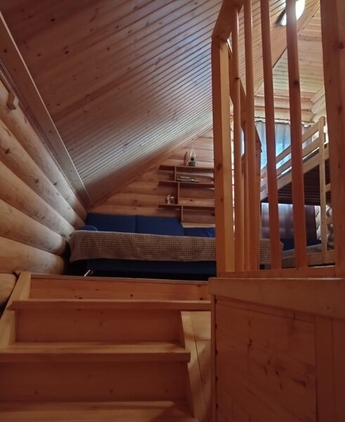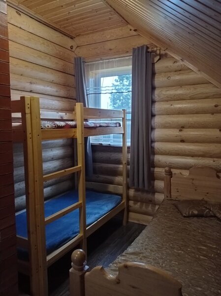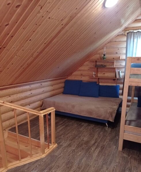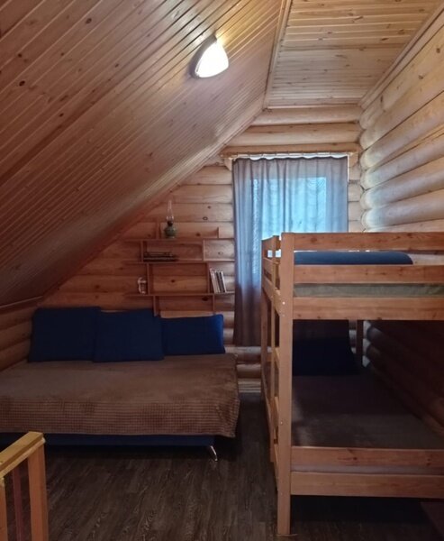 В доме кухня; санузел, 1 комната и кровать-чердак , т.е. двухэтажная конструкция, на 2 этаже которой размещаются 4 спальных места: