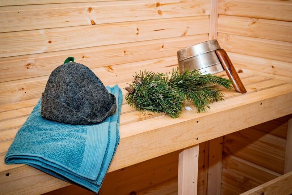 Современная сауна и просторная купель. Расслабьтесь в тепле, а затем освежитесь в целебной воде.