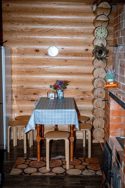 Погрузитесь в атмосферу настоящего загородного уюта в нашем двухэтажном бревенчатом доме с большой печкой и камином.