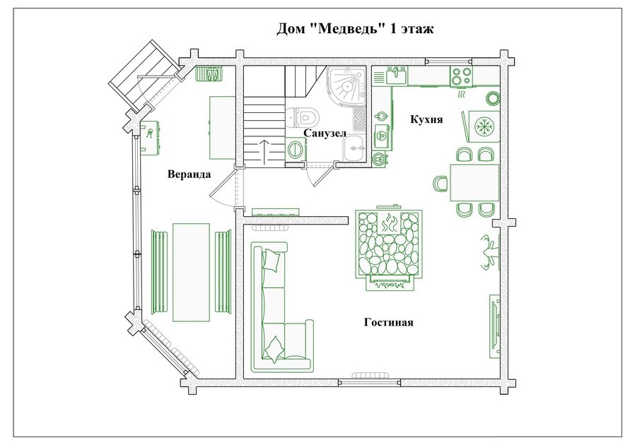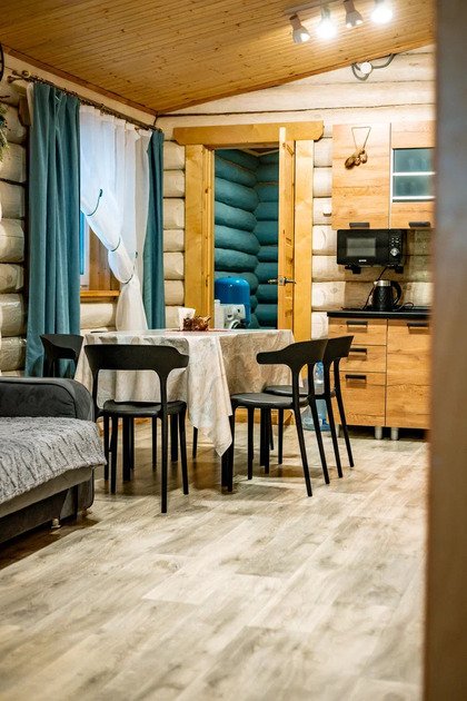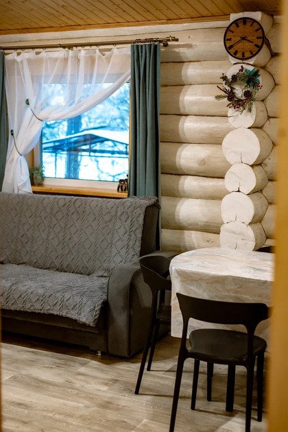 Сочетание деревенского шарма и современных удобств создаёт идеальную обстановку для отдыха: согревайтесь у печки, смотрите фильмы в гостиной или наслаждайтесь видами с веранды — каждый найдёт здесь свой уголок счастья.