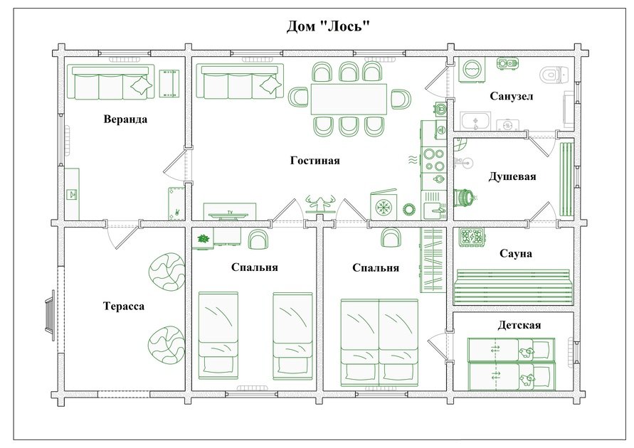 Приглашаем вас в современный бревенчатый дом со всеми удобствами, где гармонично сочетаются комфорт современной жизни и очарование природы.