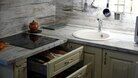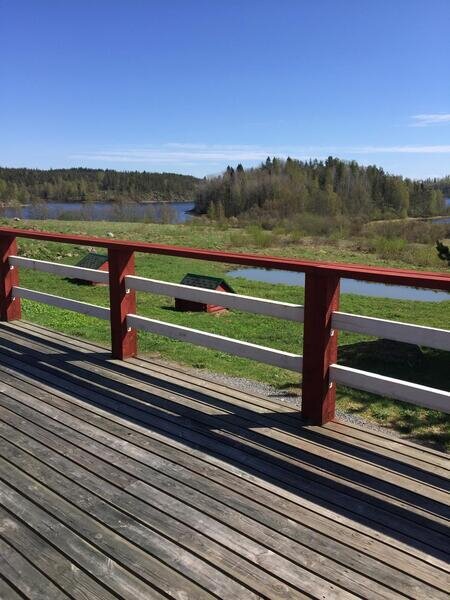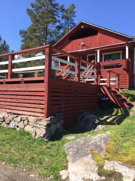 Площадь дома 55 квадратных метров, плюс оборудованная мебелью терраса с видом на скалы и озеро (30 квадратных метров под навесом и 30 м квадратных метров открытой).