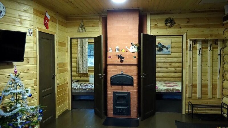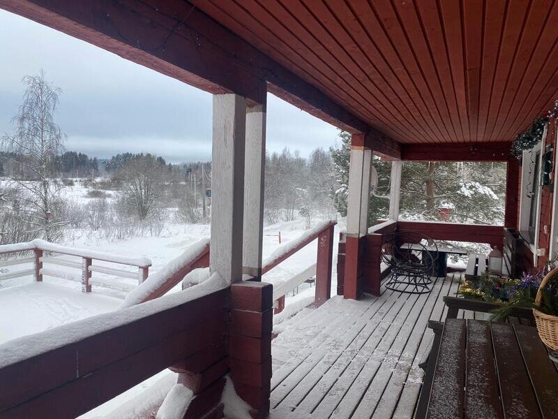 Двухэтажный зимний дом из бруса с 3 отдельными спальнями в 120 метрах от озера — камин, мангал, терраса.