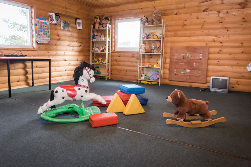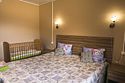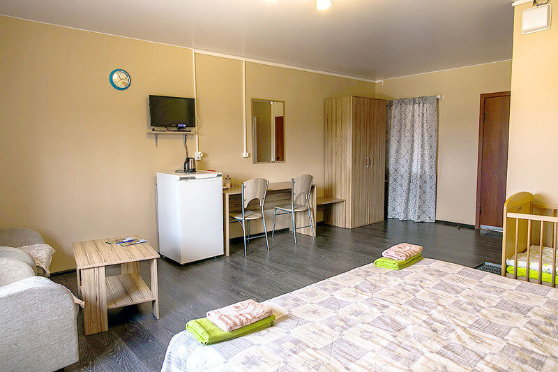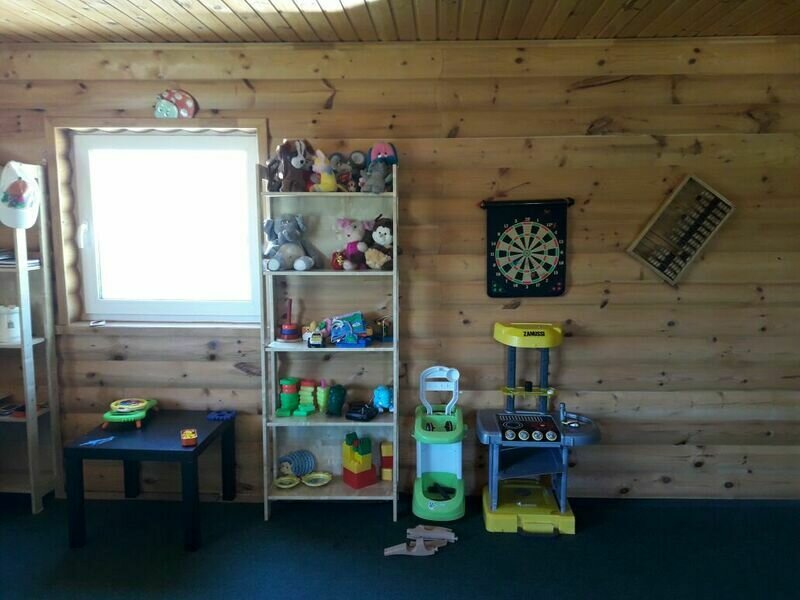 Отдыхающим с детьми предоставляются бесплатно: детская кроватка, стульчик и пеленальный стол. Предусмотрены игровая площадка, детская комната и различные настольные игры.