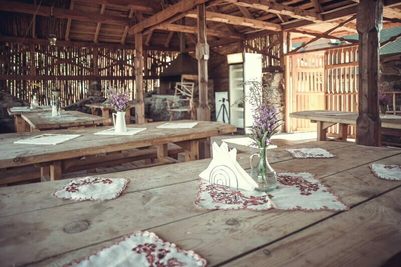 На базе есть открытое и закрытое кафе, где вас ждёт домашняя пища, приготовленная из натуральных продуктов местного подворья. Кроме того, возможен вариант приготовления еды самостоятельно. Предусмотрена возможность организации шашлыков и барбекю.