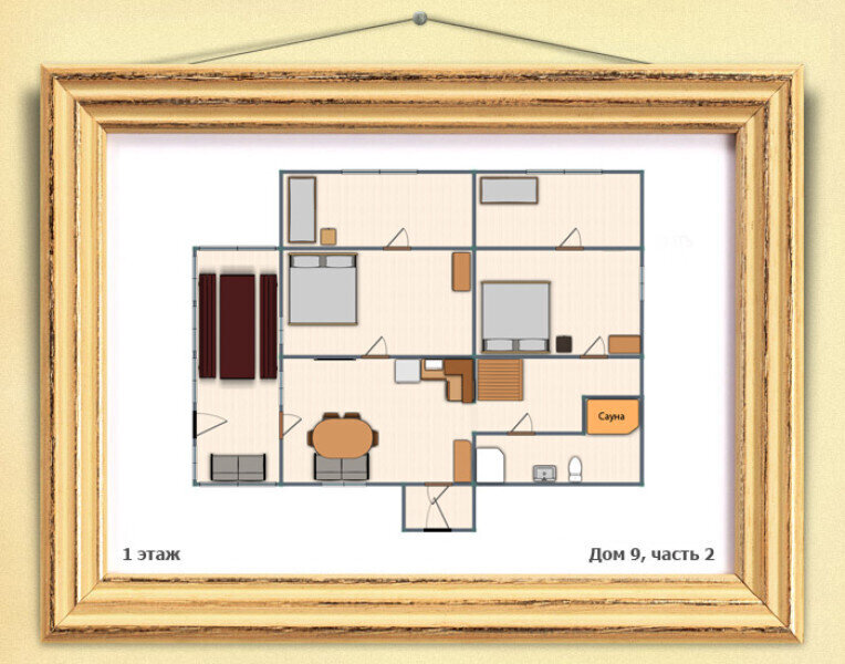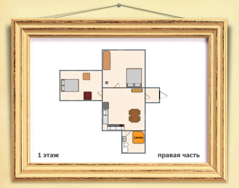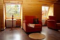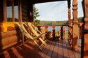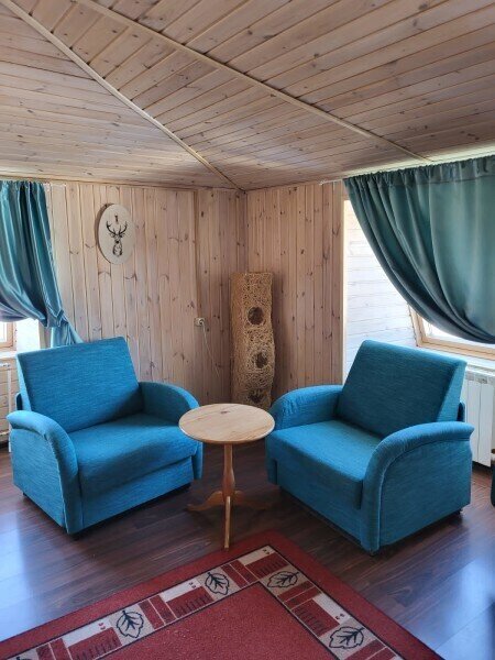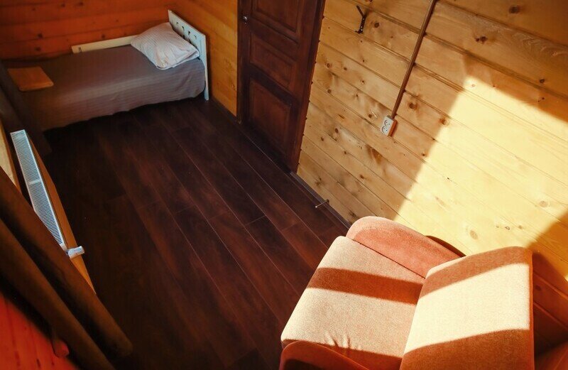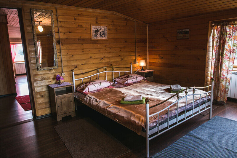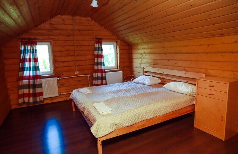 Комнаты обшиты деревом, мансардные окна, покрытие – ламинат. Вид на озеро. Сауна (за доп. плату 600 ₽ / 2 часа).
