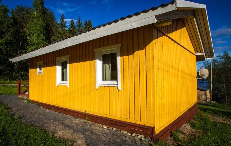 Одноэтажные домики расположены в 5-7 минутах ходьбы от администрации базы и основной территории .