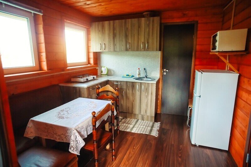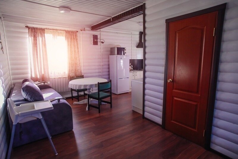 Одноэтажный домик расположен в 5-7 минутах ходьбы от администрации базы и основной территории .