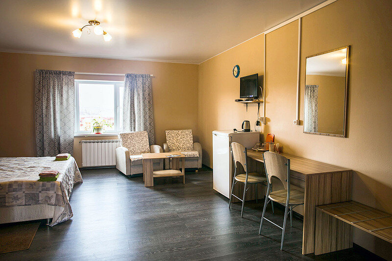 Стандартные комнаты с отдельным входом, с видом на озеро и удобствами в номере. Отопление в доме от котельной (батареи).