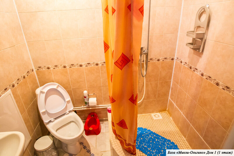 Удобства в каждой комнате: душевая кабина, туалет, горячая вода. Чайник на 2 чашки, небольшой холодильник. Ковровое покрытие, отопление, TV.